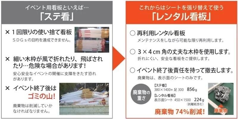 以前まで使っていたステ看板は、ゴミが多く環境に悪かったのですが、レンタル看板はシート一枚分のゴミしか出ないんです!