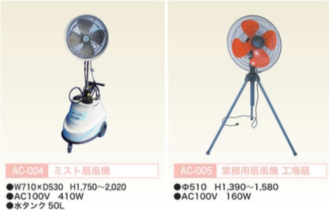 ・倉庫、屋内作業場にはスポットクーラー等の